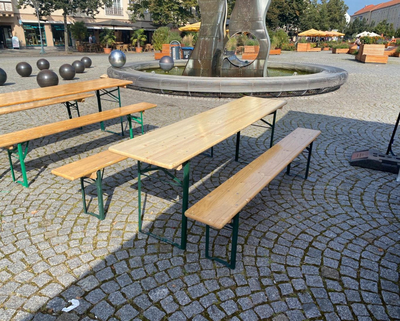 Unsere Garnituren sind ideal für kleine Feiern im Garten genauso wie für größere Events und Stadtfeste.